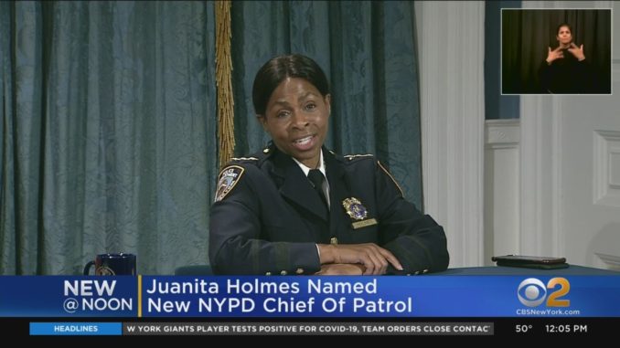 НЬЮ-ЙОРК — Впервые в истории департамента женщина была назначена начальником патрульной полиции Нью — Йорка. Комиссар Дермот Ши сделал объявление в четверг. Холмс — самая высокопоставленная афроамериканка в истории полиции Нью-Йорка. У нее 16 ближайших родственников, которые также работают в полиции. Benevolent полицейская ассоциация (PBA) поддержала ее продвижение. «Вся семья шефа Холмса олицетворяет самые гордые традиции полиции Нью-Йорка, поэтому она лучше всех понимает, как наша работа и традиции подрываются и подвергаются нападкам. Офицеры полиции Нью-Йорка отчаянно нуждаются в компетентных лидерах, таких как шеф Холмс, которые могут эффективно противодействовать политиканам, дать нам возможность выполнять свою работу и помочь нам остановить откат назад этого города», — написал президент PBA Пэт Линч.
