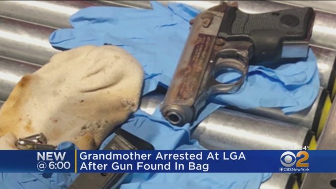 НЬЮ-ЙОРК . Бабушка была арестована в аэропорту LaGuardia в понедельник 15 июля 2019 года после того, как сотрудники Администрации транспортной безопасности (TSA)обнаружили заряженный пистолет в ее багаже. Сотрудник TSA говорит, что женщина из Северной Каролины путешествовала с двумя своими внуками. Офицеры заметили пистолет, когда ее чемодан проходил через рентгеновский аппарат на контрольно-пропускном пункте. По данным TSA, в пистолете было шесть пуль, в том числе одна в патроннике.