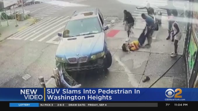 НЬЮ-ЙОРК — Шокирующее видео наблюдения показывает, как владелец гастронома спасает пешехода после того, как он был сбит автомобилем на Манхэттене в субботу. Полиция все еще ищет водителя. Произошло это около 6:45 утра на 157-й Западной улице и Амстердам-авеню в Вашингтон-Хайтс. На видео видно, как синий внедорожник BMW врезался в 62-летнего мужчину, когда он собирался перейти улицу. Пострадавший лежал под автомобилем, до тех пор пока владелец гастронома не подбежал и вытащил мужчину из-под обломков. Свидетель говорит что, если бы мужчину не вытащили , то водитель мог бы переехать через него. Шины были так близко к его голове.