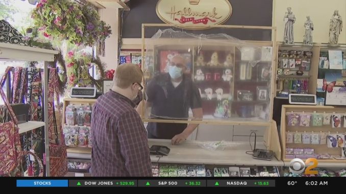 Защитный щит, установленный в торговом центре Chris & Rob’s Hallmark в Гарден-Сити, является частью их планов по открытию. «Быть осторожным не помешает», — говорит владелец Крис Холленштейн, который считает, что эта часть плана состоит в том, чтобы приглашать постоянных покупателей обратно в магазин. «Мы будем звонить им лично, потому что у нас есть список», — сказал Холленштейн. Фаза 1 повторного открытия начинается в среду, а это значит, что ритейлеры могут предложить забрать товар в магазине или на обочине. «Сегодня у нас хорошие новости от губернатора, завтра мы находимся на этапе 1», — сказала исполнительный директор округа Нассау Лора Курран.