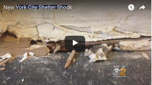 Журналисты CBS New York побывали в приютах Нью-Йорка, можно увидеть на видео что условия ужасны. Стены отпадают, ржавый санузел, грибок на потолках и так далее. Мер де Блазио говорит, что знает об этой ситуации и обеспокоен и в ближайшие месяцы ситуация будет меняться.