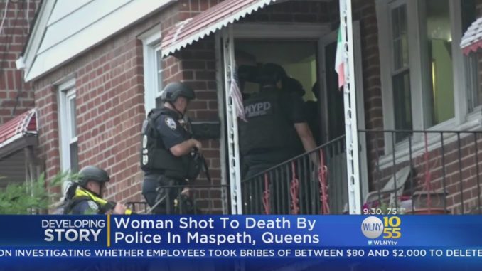 Полиция Нью-Йорка сообщает , что женщина, владевшая ножом, была смертельно ранена полицией, так как она не отказалась от своего оружия.