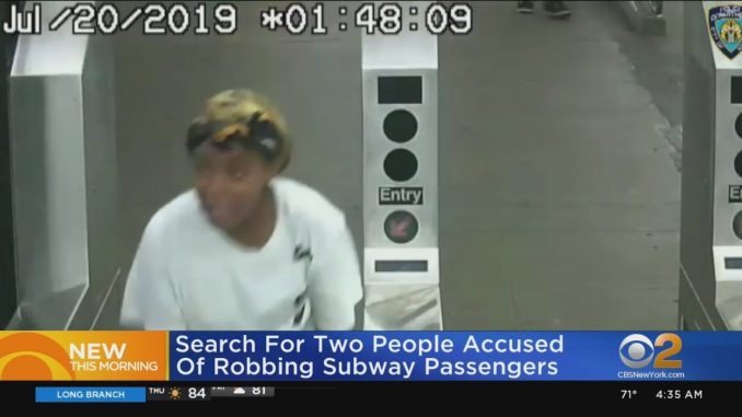 НЬЮ-ЙОРК Полиция сообщает, что разыскиваются женщина и мужчина за пару насильственных грабежей в метро в Бруклине.