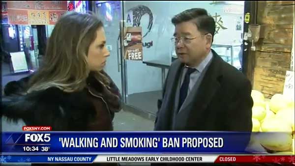 В случае если предлагаемый законопроект пройдет, то курильщикам больше не разрешат купить сигарету, прогуливаясь по улицам города. Предлагаемый закон направлен на минимизацию вторичного дыма на улицах Нью-Йорка. Новый законопроект, представленный нью-йоркским советом. Член совета Питер Koo , как ожидается, представит законопроект , который запрещает курить во время прогулки по улицам Нью — Йорка, в соответствии с NY1 . Тем не менее, курильщикам, которые стоят в отведенном месте, перекур будет разрешен. Цель закона, по словам консультанта Koo ( Councilman Peter Koo (D-Queens) , заключалась бы в том, чтобы уменьшить количество задымленности среди жителей Нью-Йорка.
