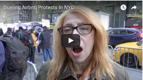 В Нью-Йорке в среду прошли дуэльные протесты по поводу Airbnb перед офисом губернатора Нью-Йорка Эндрю Куомо. Некоторые жители Нью-Йорка поддерживали сервис Airbnb, а некоторые выступали против с плакатами «Airbnb — это плохо для жителей Нью-Йорка».