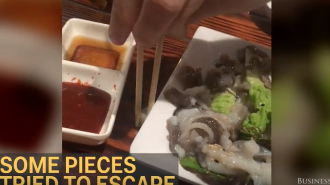 В Sik Gaek в Квинси (Нью-Йорк) подают свежие осьминоги. Блюдо подается в то время как осьминог все еще двигается.