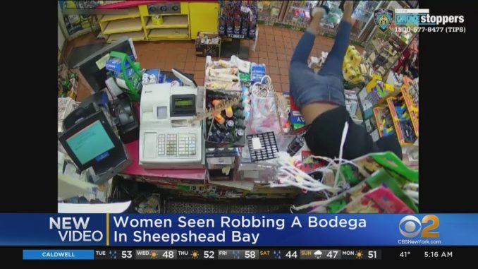 Полиция разыскивает двух женщин, которых видели, когда грабили винный погребок в Бруклине. Инцидент произошел незадолго до 2:30 утра в воскресенье на Парк-авеню в районе Форт-Грин, и его запечатлили на камеру наблюдения. Подозреваемые вошли , достали огнестрельное оружие, вытащили сигареты и деньги из кассы и скрылись пешком. Владелец магазина, Хасан Лсамди, говорит, что мужчина угрожал убить его и заставил его и покупателя упасть на пол. Лсамди , который служил в иорданской армии до приезда в США, не пострадал. Он сказал, когда у кого-то есть пистолет, а у вас нет, вы делаете то, что они говорят.