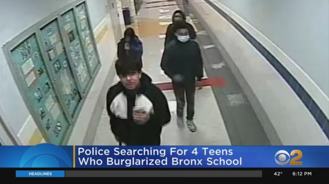 НЬЮ-ЙОРК — Полиция разыскивает группу подростков, обвиняемых в краже в школе в Бронксе. Это произошло в учебном кампусе Мотт-Хейвен в секции Concourse. Полиция сообщает, что четыре человека пришли в школу около 9 часов вечера. 14 апреля и при помощи кувалды пытались ломать металлические решетки безопасности на окне школы, но они не увенчались успехом. Видеонаблюдение показывает, как подозреваемые ходят по коридорам. Затем они якобы схватили девять компьютеров Apple и сбежали . Полиция разыскивает трех мальчиков и девочку, всем предположительно 15-18 лет.