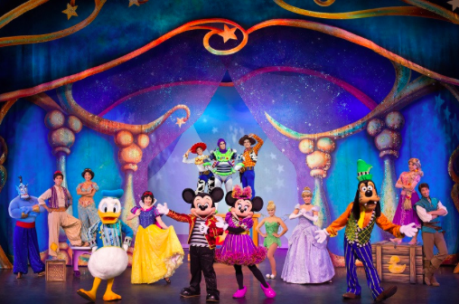 Детское шоу, в исполнении талантливейших актеров, в костюмах героев мультфильмов Walt Disney получило невообразимое признание у публики. Каждый персонаж исполняет свою роль под музыку, соответствующую сюжету. Множество элементов из фильмов и мультфильмов собрано в этом шоу воедино. Исполнителей этих сказочных ролей, не узнать в костюмах, они остаются анонимными.