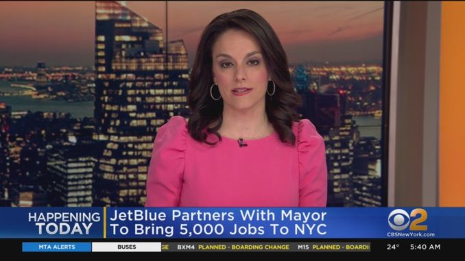 Авиа-компания Джет Блу ( JetBlue ) с «партнерстве в мэром Нью-Йорка Эриком Адамсом» ( что значит партнерство с мэром? ) откроет пять тысячи рабочих мест в нашем городе, сообщает CBS New York.