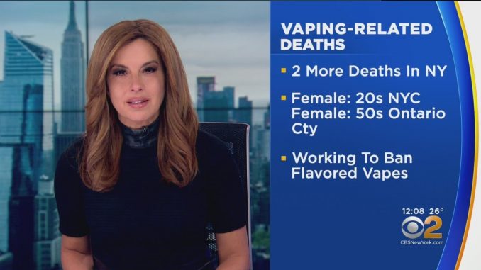 НЬЮ-ЙОРК — Еще двое жителей Нью-Йорка умерли от болезней, связанных с вейпингом, заявил губернатор Эндрю Куомо в пятницу. Общее количество смертей по всему штату, связанных с вейпингом, достигает четырех человек. Куомо сказал, что последними жертвами стали женщина в возрасте 20 лет из Нью-Йорка и еще одна женщина в возрасте 50 лет из округа Онтарио.