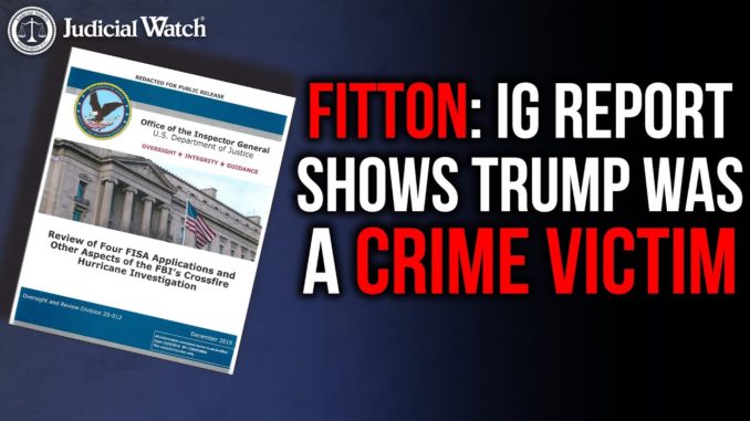 – Президент неправительственной организации, которая следит за законностью действий администрации и конгресса Judicial Watch – Том Фиттон ( Tom Fitton ) обсуждает решение I.G. доклад, в котором разоблачается незаконный шпионаж администрации Обамы/Байдена за президентом Трампом и его политическими союзниками.