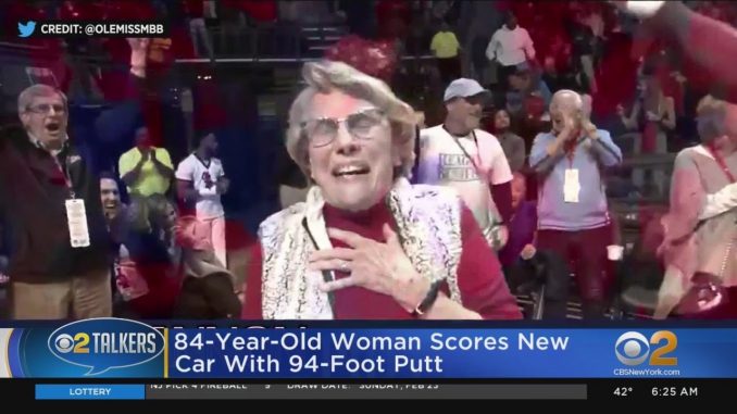 Нью-Йорк У 84-летней женщины есть хорошие навыки в гольфе и новая машина, которая доказывает это. 84-летняя женщина вышла на корт во время перерыва в игре баскетбола и пробив 94-футовый клюшка для гольфа, выиграла новую машину. , Мэри Энн Уэйкфилд, провела удар с одного конца пола, вдоль базовой линии , попав прямо в отверстие на противоположной базовой линии. Так своим умением она выиграла в 2020 году авто Nissan Altima. «Я скажу вам, что, это выглядит хорошо», сказал хозяин арены Оле Мисс после того, как удар Уэйкфилда достиг логотипа половины корта. «Это выглядит действительно хорошо».