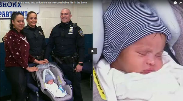 Два офицера NYPD стали героями, когда, сохраняя хладнокровие, предприняли энергичные и эффективные действия, которые спасли жизнь новорожденного в Бронксе. Впавшая в панику мама, по причине плохого состояния её ребенка, обратилась к патрульной машине, когда ее 8-дневный ребенок начал синеть. Она сказала, что маленький Рэй Родригес начал отрыгивать молоко в свою кроватку и испытывал трудности с дыханием. Мама думала, что ее ребенок умирает.