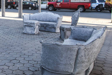Создал это художник с Лос-Анджелеса, работы состоят из группы мебели стиля времен Людовик XIV (в том числе тахты, диваны и кресла), изготовленные из монолитного бетона. Набор из девяти объектов, каждый из них разработан по когда то существующему примеру.
