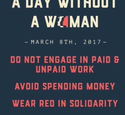 По всей стране женщины собираются выйти на забастовку под лозунгом «День без женщин». Акция пройдёт 8 марта. Её цель – показать обществу, что может случиться, если не будет женщин. Митингующие собираются на пересечении 5-й Авеню и 59 str. (южный угол Центрального парка). Начало в полдень. Организаторы акции призывают участников приносить с собой еду и напитки из дома, что, по их мнению, поможет показать коммерческому истеблишменту, на что стал бы похож мир, если бы не было женщин.