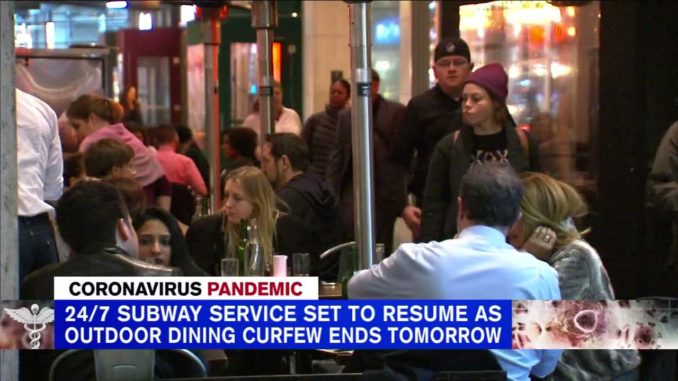 Работа метро в Нью-Йорке возвращается в привычный ритм — 24 часа в сутки жители и гости города смогут снова пользоваться сабвеем. С понедельника рестораны нью-йорка начинают работать в привычном доковидном режиме.