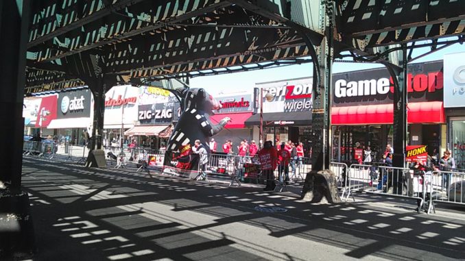 На 86 стрит сегодгя проходит профсоюзный митинг работников компании Verizon за повышение заработной платы.