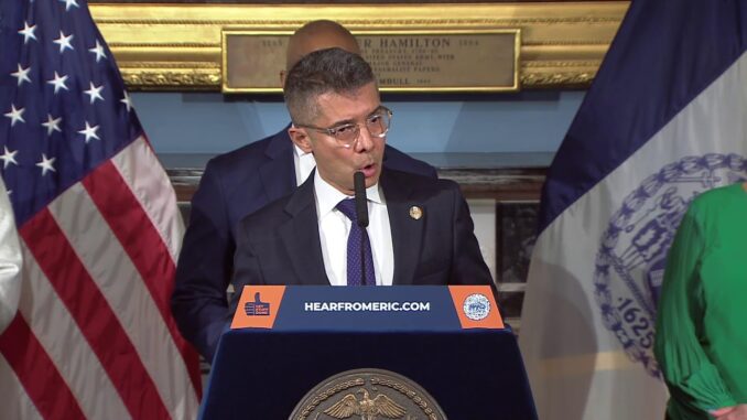 Нью-Йорк. Мэр Эрик Адамс делает объявление, связанное с налоговым сезоном Синий зал мэрии Нижнего Манхэттена 3 марта 2023 года