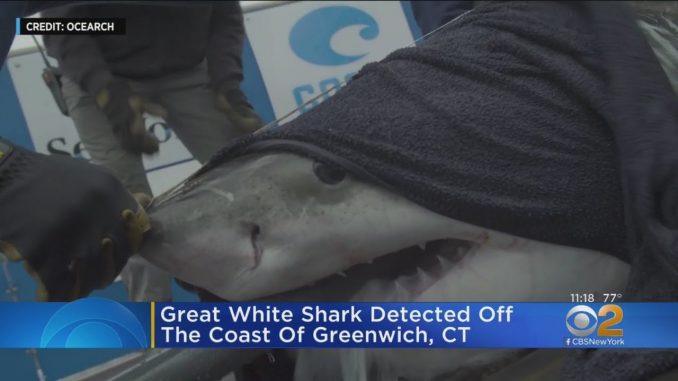 В понедельник Ocearch, группа, которая отслеживает жизнь океана, опубликовала фотографию «Кэбот», рыбы около 10 футов в длину, которая плавает возле Гринвича, штат Коннектикут. Ученые пометили акулу прошлой осенью и с тех пор следят за её движением.
