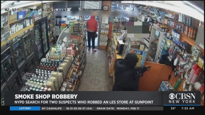 НЬЮ-ЙОРК – табачная лавка была под прицелом огнестрельного оружия в понедельник в Манхэттене, и все это было снято на камеру. Полиция пытается выследить двух мужчин, которых видели на видео — один, вооруженный, казалось, штурмовой винтовкой. Ограбление произошло незадолго до 16:30 в N & N Delancey Smoke Shop на Нижнем Ист-Сайде. Полиция сообщила, что один подозреваемый попросил у служащего сигареты, а другой угрожал сотруднику оружием и потребовал деньги. Работник выполнил требования и передал 3500 долларов наличными, 30 пачек сигарет, лотерейные билеты и мобильный телефон. Полиция сообщила, что подозреваемые скрылись в автомобиле, который был припаркован на улице. Работник магазина не пострадал. Любого, кто узнает подозреваемых, просят позвонить на горячую линию NYPD Crime Stoppers по телефону 1-800-577-TIPS (8477) или 1-888-57-PISTA (74782) для испанского языка.