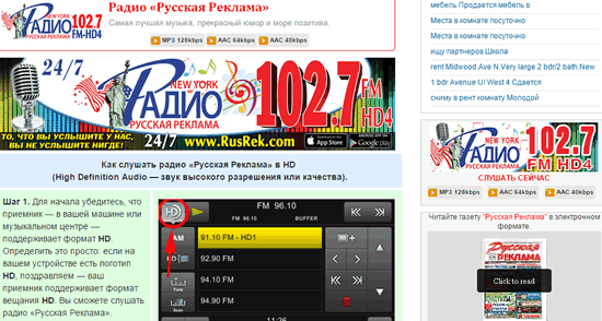 Радио «Русская Реклама» через сеть интернет доступно теперь для пользователей не только в Нью-Йорке — но и по всему миру — как в США так и на территории стран бывшего СССР, в Европе, Азии, Австралии.