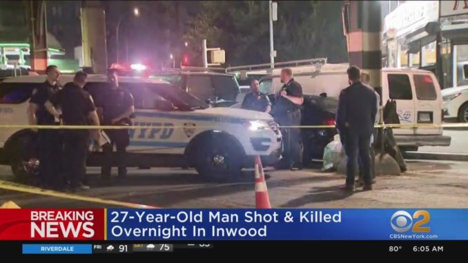 — 27 летний молодой человек был застрелен после спора на улице. Шальная пуля по время стрельбы ранила прохожего в ногу. Пострадавший был доставлен в больницу. Инцидент произошел на верхнем Манхеттена , в районе инвуд.
