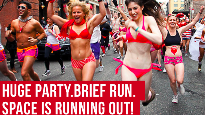 Благотворительная акция под названием Cupid’s Underwear-only Run для сбора денег в детский фонд онкобольных — забег в нижнем белье. Этот флешмоб проходит каждый год и собирает много денег для #EndNF, в прошлом году акция привлекла $ 3,5 млн людей. Присоединяйтесь и вы, возможно это будет одно из самых сумасшедших и добрых вещей, которые вы делали — ведь середина февраля, а бежать нужно в нижнем белье. Нужна Регистрация