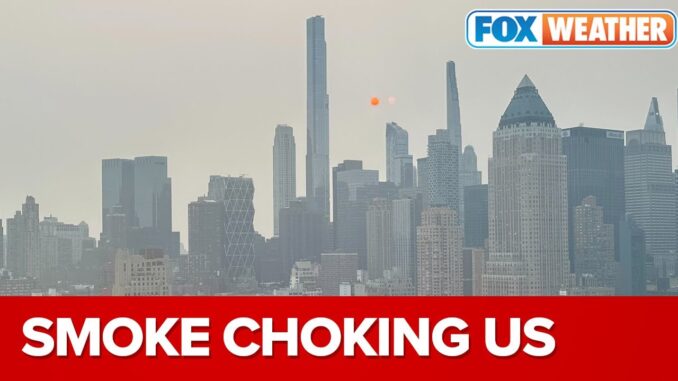 Во вторник Нью-Йорк и большая часть Северо-Востока дышали «нездоровым» воздухом, поскольку регион был окутан дымом от канадских лесных пожаров.