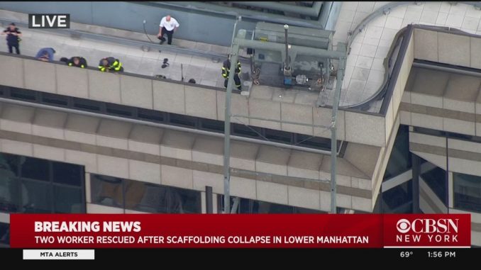НЬЮ-ЙОРК — Двое рабочих были спасены после обрушения лесов, в результате которого обломки упали на улицу в нижнем Манхэттене в понедельник днем. Инцидент произошел на 60 Уолл-стрит. Пожарные на крыше здания смогли вывести обоих рабочих в безопасное место.