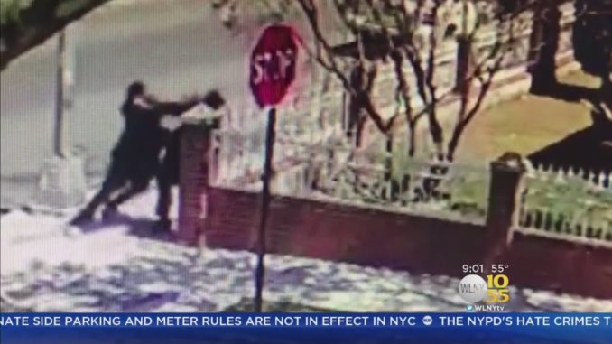 Как видно на видео, в прошедшее воскресенье незнакомец приблизился к мужчине, идущему из синагоги, и начал драться с ним, предварительно сказав, что он не любит евреев. Как сообщает полиция, это второй инцидент, первое подобное нападение произошло в суботу. Полиция выясняет, связаны ли эти два нападения, и ищет нападавшего . Видео CBS New York News