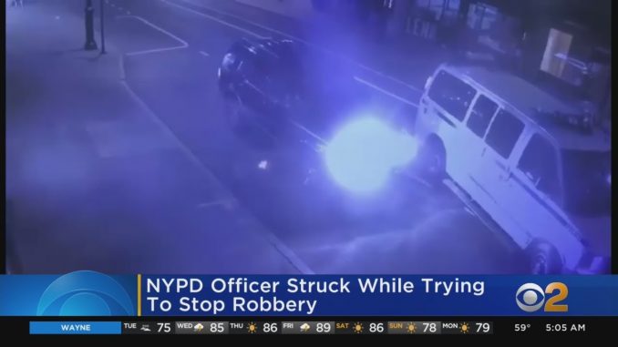 Нью-Йорк — Офицер полиции Нью-Йорка был ранен внедорожником ранним утром в понедельник, когда пытался остановить грабителя в Гринвич-Виллидж.