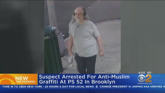 НЬЮ-ЙОРК — В среду вечером был арестован мужчина, обвиняемый в написании антимусульманских высказываний в Бруклинской начальной школе .