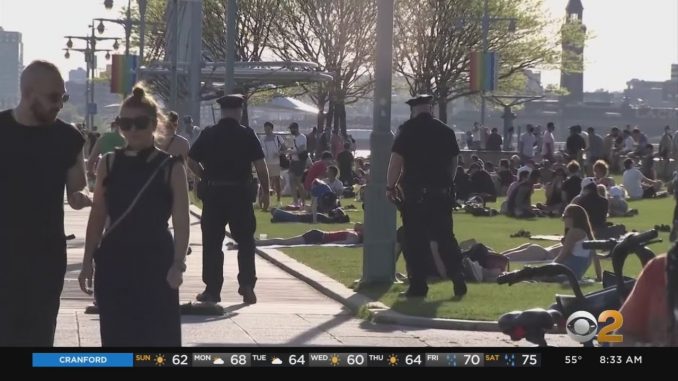 Нью-Йорк — Еще один день с жаркой температурой принес жителей Нью-Йорка на улицу, но когда люди пытались заполнить несколько парков, их встретили так называемые послы социальных дистанций ( social distancing ambassadors) Стратегия принуждения смещается от строгого полицейского надзора за социальным дистанцированием к более мягкому убеждению со стороны так называемых послов, в результате чего полицейские сосредотачиваются только на самых вопиющих нарушителях.