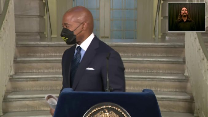 Мэр Нью-Йорка Эрик Адамс провел пресс конференцию с медиа в горсовете Нью-Йорка — Сити Холле City Hall Rotunda, City Hall Manhattan New York.