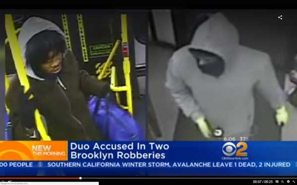 Полиция Нью-Йорка разыскивает двух человек в связи с серией ограблений по всем районам, включая Бруклин. Пара обвиняется по нескольким эпизодам разбойных нападений в Бруклине и Квинсе, последние из которых состоялись в четверг в Maspeth Deli и Grill на Гранд-авеню в Флашинге.