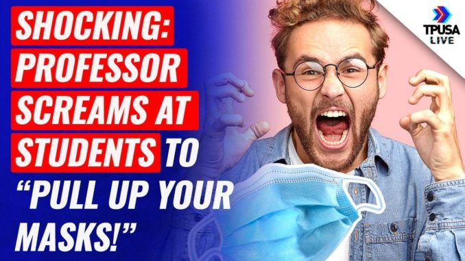 ЧТО ПРОИСХОДИТ В «ПРОГРЕССИВНЫХ УНИВЕРСИТЕТАХ» США ПОНЯТНО С НОВОГО ВИДЕО СНЯТОГО СТУДЕНТАМИ, ГДЕ ВПАВШИЙ В «КОВИДОБЕСИЕ» МОЛОДОЙ ПРОФЕССОР ОРЕТ С КАФЕДРЫ НА АУДИТОРИЮ, ТРЕБУЯ НАТЯНУТЬ МАСКИ НА НОС.