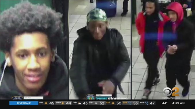НЬЮ-ЙОРК . Полиция Нью-Йорка разыскивает четырех подозреваемых, в связи с парой грабежей в газетных киосках на станциях метро в Бруклине. Фотографии наблюдения были сделаны ещё до того, как мужчины избили и ограбили работника газетного киоска на станции метро Borough Hall, на 2-й линии в прошлое воскресенье вечером. Те же люди подозреваются в избиении и ограблении другого работника газетного киоска на станции метро Atlantic Avenue, также на 2-ой линии 16 декабря.