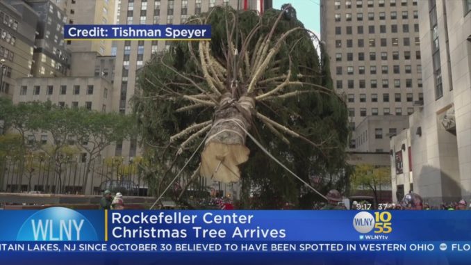 Возбужденные зрители собрались в Рокфеллер-Центре в субботу утром, чтобы посмотреть, как кран поднял рождественскую елку этого года с прицепа и установил её на место. Дерево длиной 72 фута прошло 75 миль в Нью-Йорк от свого дома в северной части штата Нью-Йорк. Освещение состоится 28 ноября.