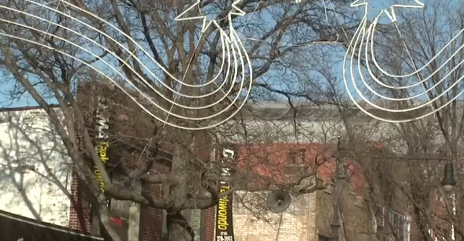 Звуки рождественской музыки доносятся на Steinway Street в Квинсе. Рождественская музыка играет с динамиков, подключенных к уличным фонарям и деревьям между 28-м и 35-м авеню во время курортного сезона.