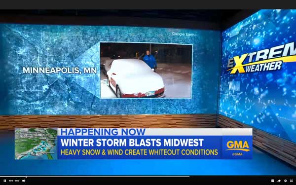 Этим утром в 21 штате было объявлено штормовое предупреждение. Сильный шторм сейчас движется на восток и постепенно слабеет, но часть его разрушительной энергии переместится на Восточное побережье сегодня вечером и сформирует к среде прибрежный шторм или, как его ещё называют, Нористер. К вечеру образуется зона низкого давления с дождем и небольшим снегопадом и прорвётся из Каролины на середину атлантического побережья. Снег и дожди начнутся в районе Филадельфии, приблизительно к ужину. Ближе к полуночи они  начнутся в Нью-Йорке.
