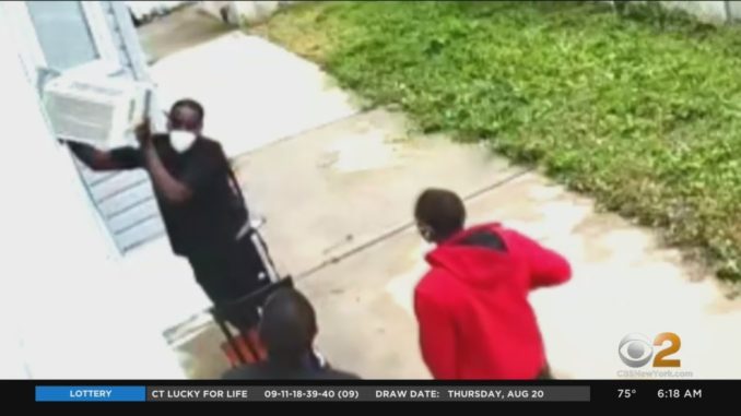 НЬЮ-ЙОРК — Полиция Нью-Йорка опубликовала новое видео наглого кражи со взломом, заснятого камерой на Статен-Айленде. Произошло это около Клов-роуд и Мозель-авеню в районе Конкорд. На видео видно, как трое мужчин ворвались в дом, сняв оконный кондиционер. Оказавшись внутри, они украли драгоценности, рюкзак и два сейфа, в которых на всякий случай лежало около 4000 долларов. Затем подозреваемые поехали на восток по Клов-роуд в сером четырехдверном седане.