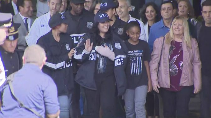 НЬЮ-ЙОРК — Офицер полиции Нью-Йорка, Ванеса Медина, раненная в запястье вторник на Стейтен-Айленде при исполнении служебных обязанностей, была выпущена из больницы в среду. Снаружи десятки полицейских из Нью-Йорка аплодировали ее храбрости. Ванеса Медина была ранена при попытке арестовать подозреваемого в домашнем насилии в Стэплтоне.