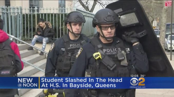 Ученик восстанавливается после того, как во вторник утром его полоснули острым предметом в старшей школе в Квинсе. Это случилось в 8:50 утра в средней школе Кардосы в Бейсайде. Полиция сообщает, что одиннадцатиклассник мужского пола был ранен в голову, находясь в школе. Студент был доставлен в университетскую больницу North Shore-LIJ. Его травмы не считаются опасными для жизни.