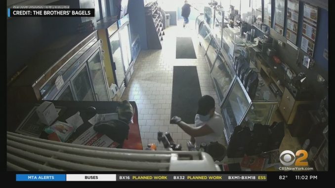 НЬЮ-ЙОРК Полиция разыскивает трех мужчин , которые в ярости разорили магазин в Бруклине , причинив ущерб в тысячи долларов. Это случилось в Brothers’ Bagels на Dyker Heights. Трое мужчин обвиняются в нанесении ущерба в размере 13 000 долл. США . К счастью, никто не пострадал. Владелец надеется, что материал видео наблюдение поможет полиции идентифицировать вандалов, прежде чем они снова нанесут удар.