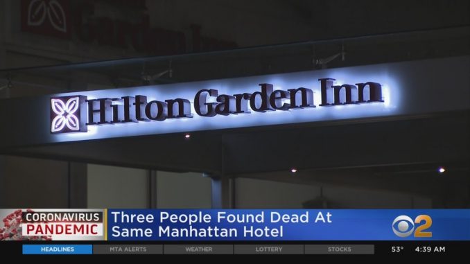 НЬЮ-ЙОРК — Три человека были найдены мертвыми в одной и той же манхэттенской гостинице. В воскресенье в Мидтауне в Hilton Garden Inn South были вызваны спасатели. Неясно, знали ли жертвы друг друга. «Городские власти предоставили гостиничные номера лицам, которые по разным причинам не могут самоизолироваться дома», — говорится в заявлении мэрии. «Каждая смерть от этой болезни — трагедия, и мы рассматриваем эти инциденты».