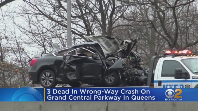 НЬЮ-ЙОРК . Полиция сообщает, что три человека погибли и один человек находится в критическом состоянии после аварии на Гранд Сентрал Паркуэй. Чиновники говорят, что вызов пришел около 5:30 утра из района возле Кросс-Айленд-Паркуэй. Полиция говорит, что водитель черной Honda Accord ехал в неверном направлении, двигаясь на запад по Гранд Сентрал Паркуэй, За рулем находился 26-летний мужчина, а на переднем сиденье находился 36-летний Сайкуан Холлумс из Скенектади. Когда водитель приблизился к выезду с Кросс-Айленд-Паркуэй в Квинсе, он столкнулся в лоб с серым седаном Hyundai. 26-летний мужчина ехал на Hyundai, а 26-летняя Меган Энн Смит из Квинса была на переднем сиденье. Обе машины получили значительные повреждения передней части и их ветровые стекла были разбиты. Холлумс, Смит и водитель Honda были доставлены в больницу North Shore University Manhasset, где все трое были объявлены мертвыми. Водитель Honda пока не опознан. Водитель Hyundai выжил и, как сообщалось, находился в критическом состоянии в местной больнице. Полиция все еще расследует, почему водитель Honda ехал не в том направлении.