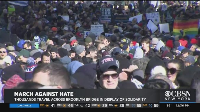 НЬЮ-ЙОРК (CBSNewYork) — В воскресенье тысячи людей прошли через Бруклинский мост в рамках акции против ненависти. Марш начался, когда еврейская община оказалась в центре ряда недавних преступлений на почве ненависти.