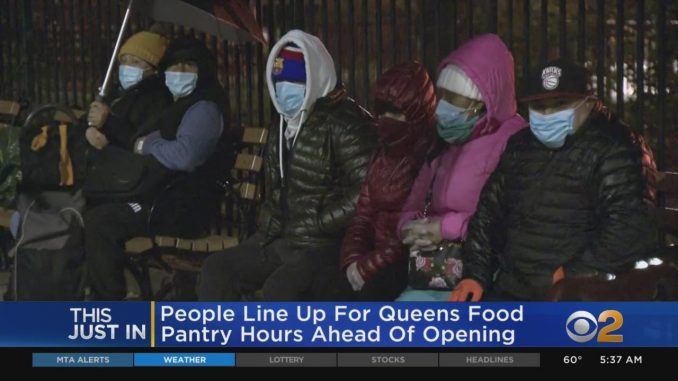 Тысячная очередь выстроились возле складов еды в Куинсе за несколько часов до их открытия