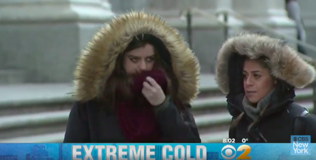 В Нью-Йорке сегодня самый холодный День Святого Валентина. Экстремальные холода в Нью-Йорке уже второй день подряд, и арктический воздух приносит некоторые опасные условия. Люди одевают по несколько слоев одежды. Сегодняшняя температура это рекорд на День святого Валентина в Центральном парке, преодолев рекордно низкую температуру минус двух градусов в 1916 году.